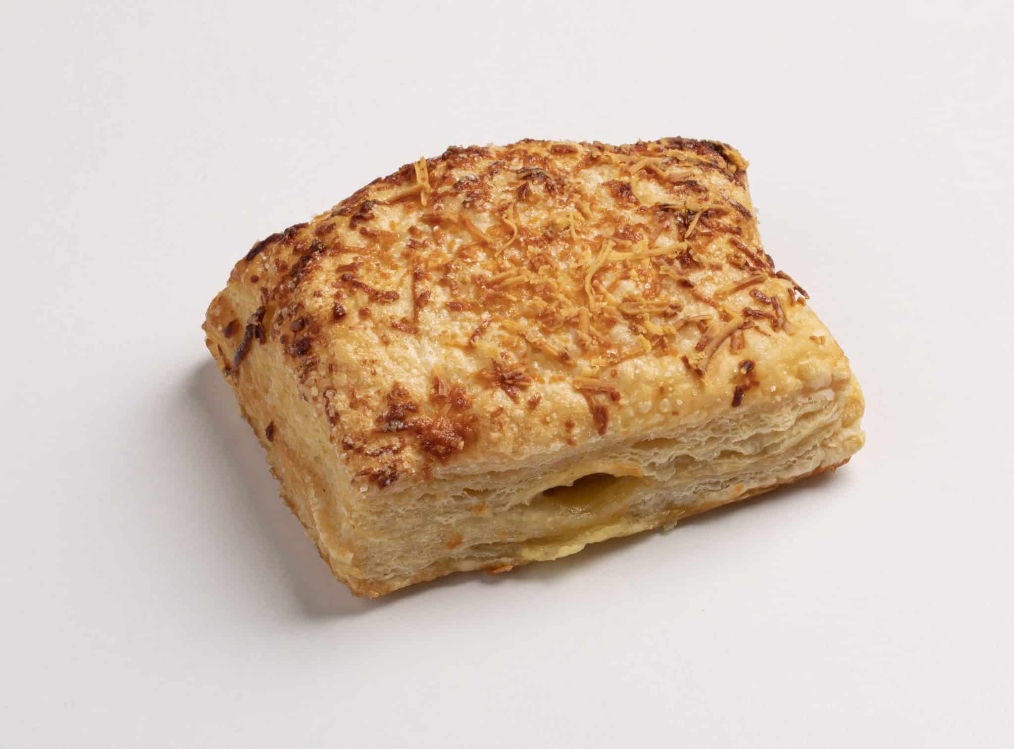 Pasta Hojaldrada con relleno de jamón, queso blanco y piña en trozos.